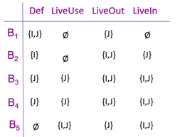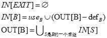 IN[B]和OUT[B]分别表示在紧靠基本块B之前和紧随B之后的点的活跃变量集合,给出如下定义:
