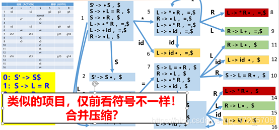 L -> • * R ,= 合并为 L -> • * R ,=,$