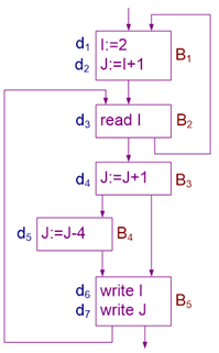 基本块的gen,kill集用来做什么?可以从流图中得到一个基本块的IN和OUT集,即该基本块入口点和出口点的定值的集合。
