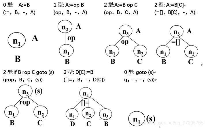 1.四元式与对应的DAG结点(-表示无该参数)
