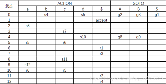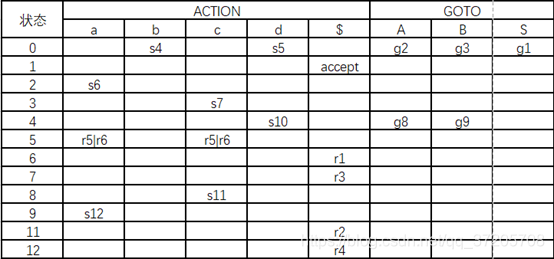 ②根据DFA构造LR(0)分析表