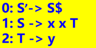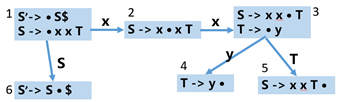 比如S -> R • ,$ (前看符号表明了该状态遇到什么符号进行归约)