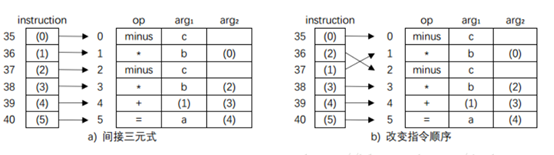 ①中间代码的第一个三地址指令是一个首指令。