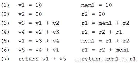 然后,活跃区间不相交的变量可以共用同一寄存器。由此直到这段三地址码至少要3个寄存器。(mem1就当成一个寄存器吧…)