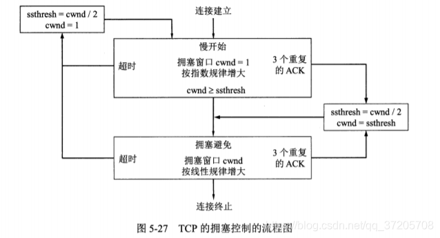 TCP进行拥塞控制的算法有四种:慢开始(slow-start)、拥塞避免(congestion avoidance)、快重传(fast retransmit)、快恢复(fast recovery)