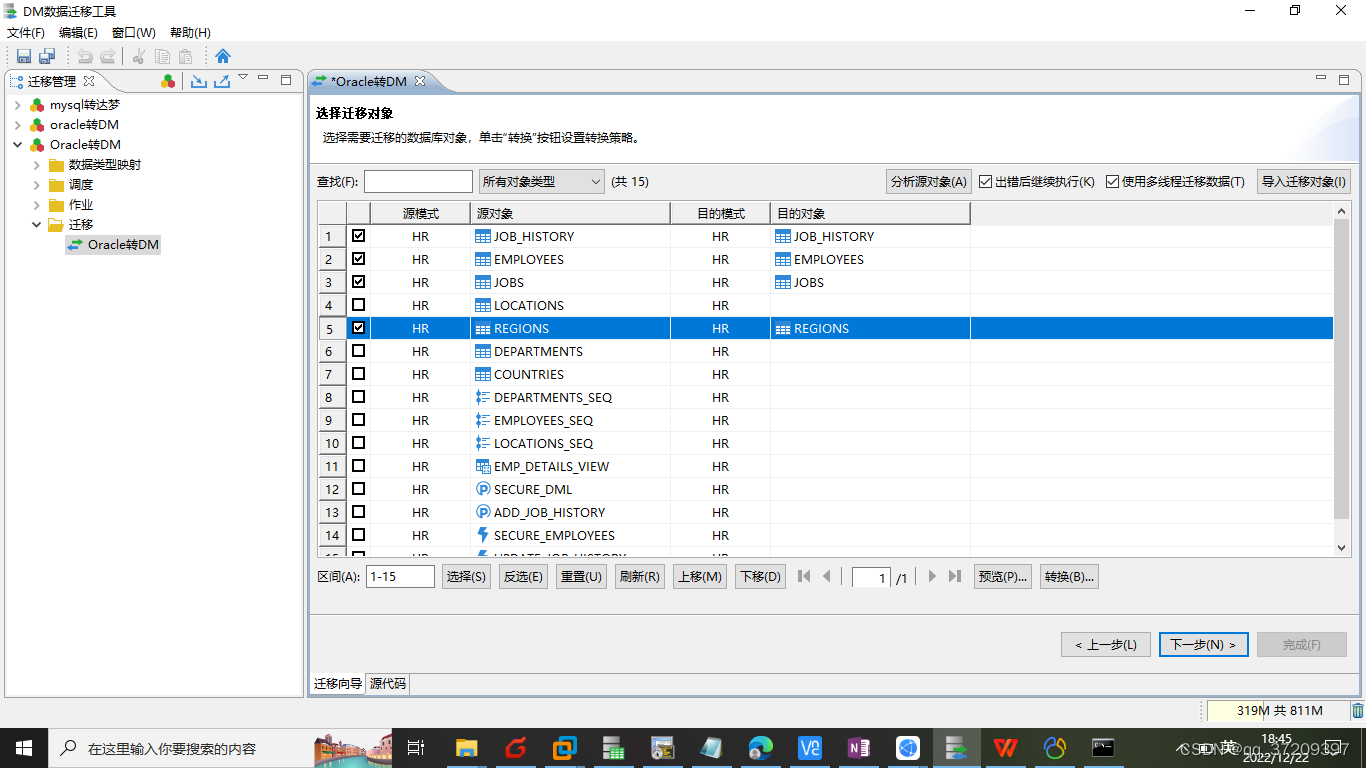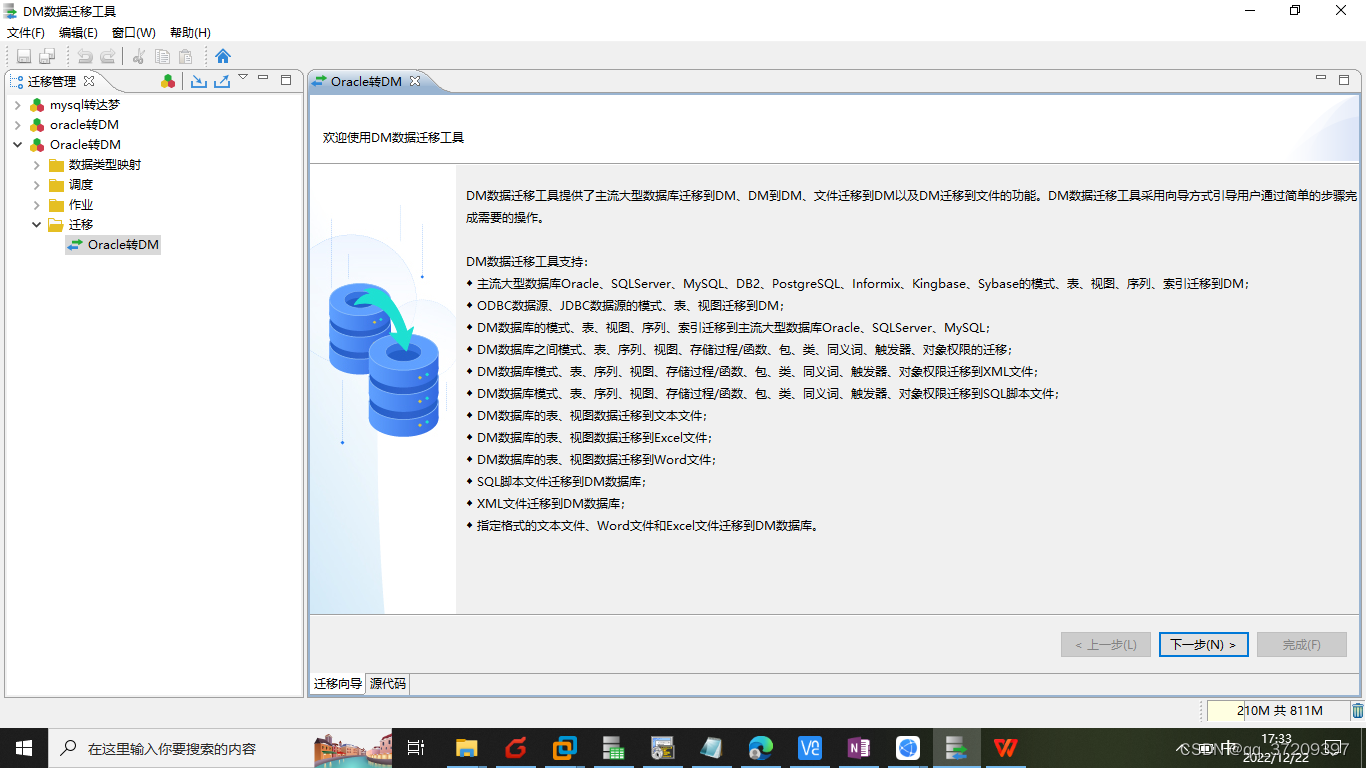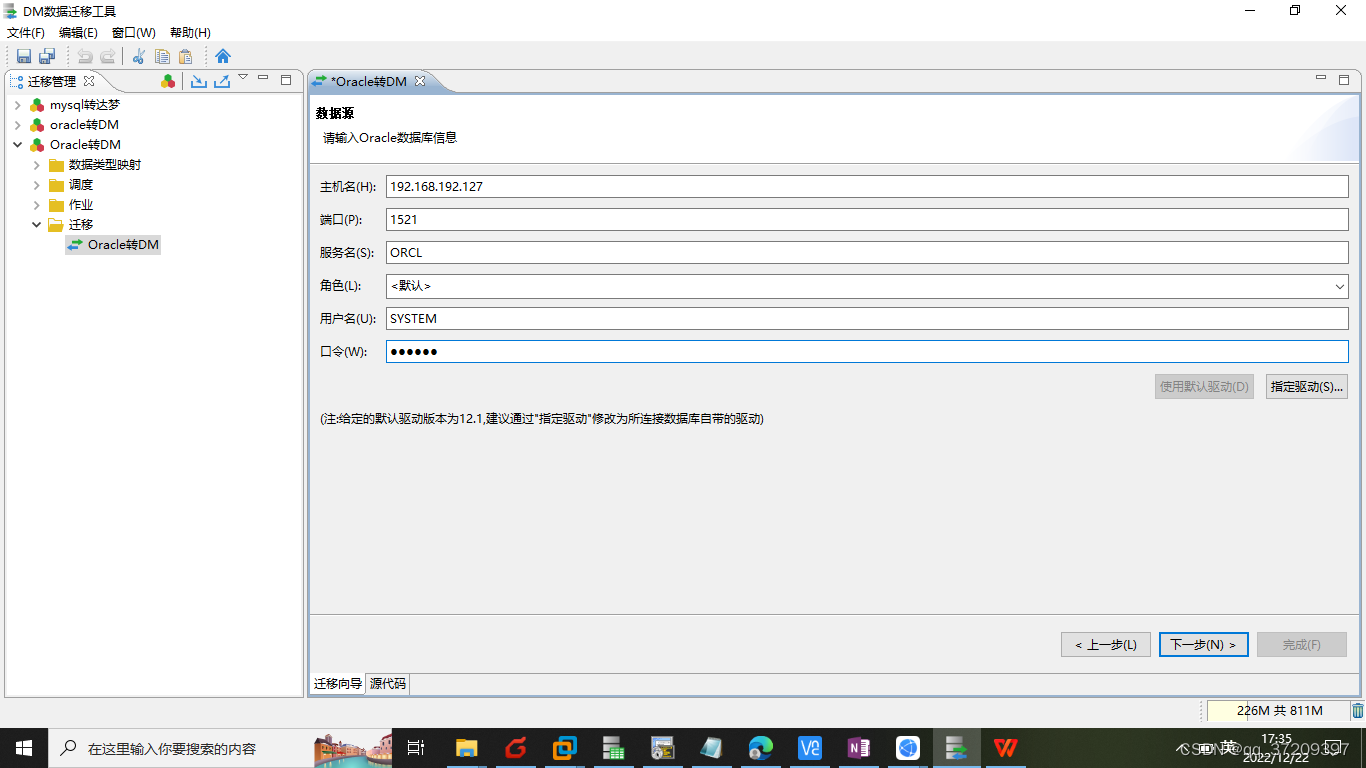 从迁移列表中选择Oracle转DM,然后“下一步“: