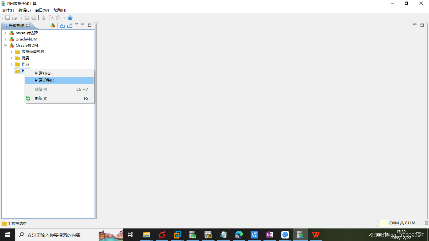 点开新建立的工程,右击“迁移“,选择”新建迁移“
