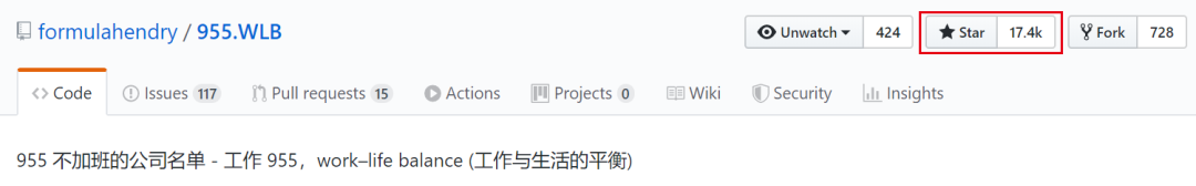 另外说一下,这个 955.WLB(work-life balance) 其实建立的背景就是之前很火的 996.ICU,目前 955.WLB 在 github 上已经获得 17.4 star。