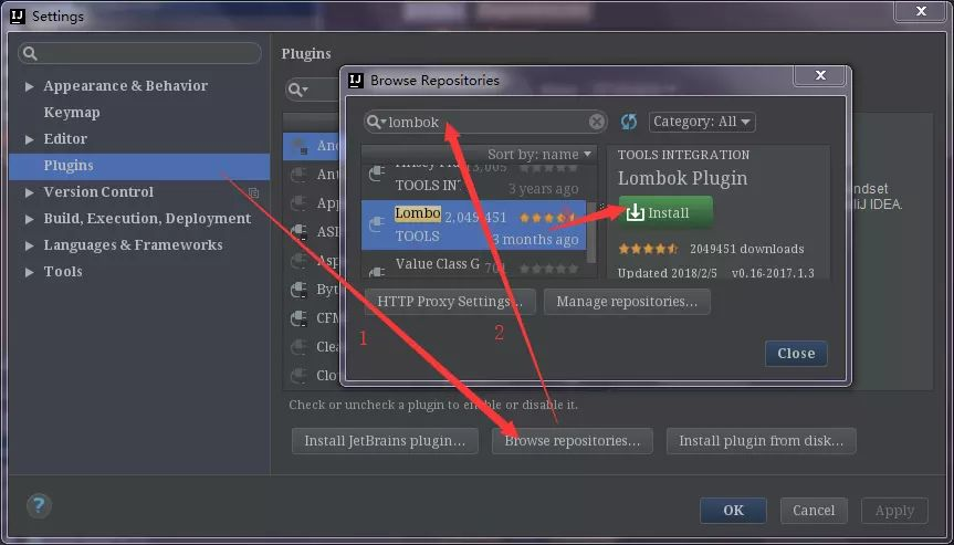 IDEA中引入Lombok支持如下:
