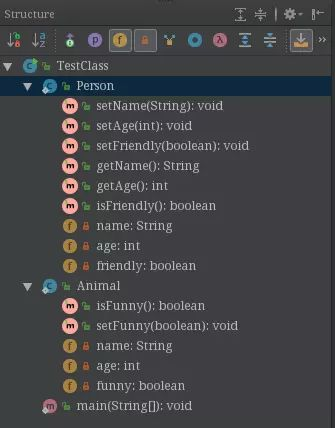 在Structure视图中,可以看到已经生成了getter/setter等方法: