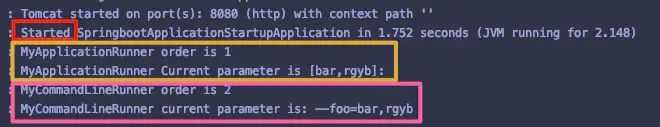 当 Spring Boot 在应用上下文中找到 CommandLineRunner bean,它将会在应用成功启动之后调用 run() 方法,并传递用于启动应用程序的命令行参数