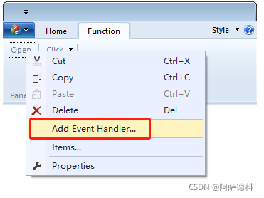 1)同样的右键点击Open按钮,选择“Add Event Handler”