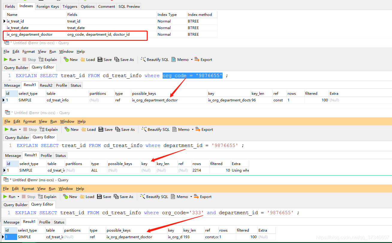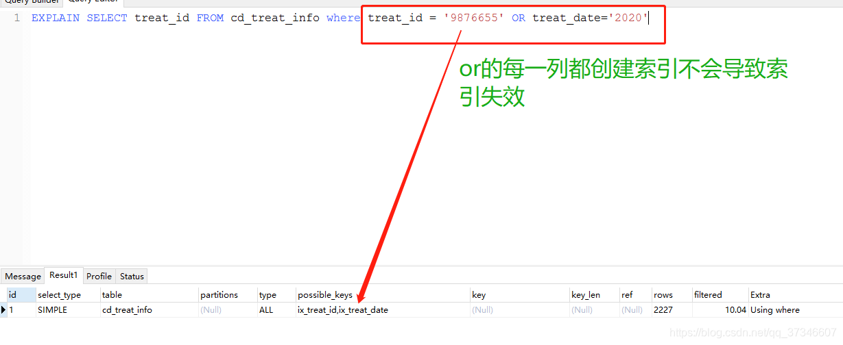 - 如果列类型是字符串(varchar),那一定要在条件中将数据使用引号引用起来,否则不会使用索引