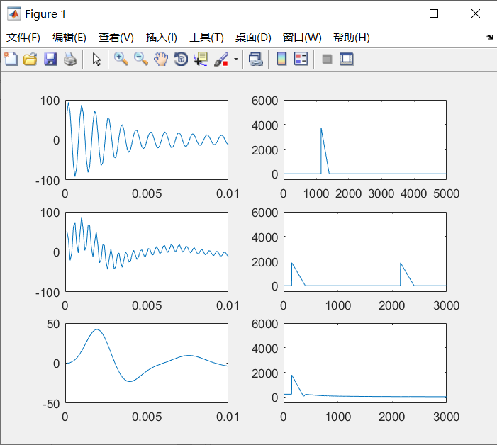 subplot(3,2,6); plot([0:9999],abs(fft(demodsig)));% 低通输出信号的频谱
