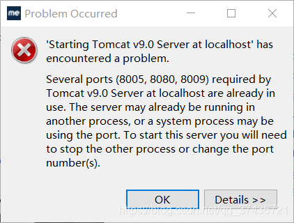 另 若打开myeclipse 运行tomcat9仍报错端口被占用
