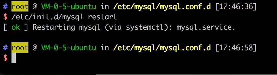 重启mysql (/etc/init.d/mysql restart)