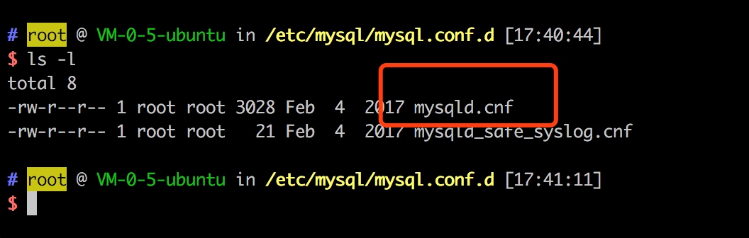 7.在当前文件夹下修改当前文件(进入这个文件:vim mysqld.cnf)