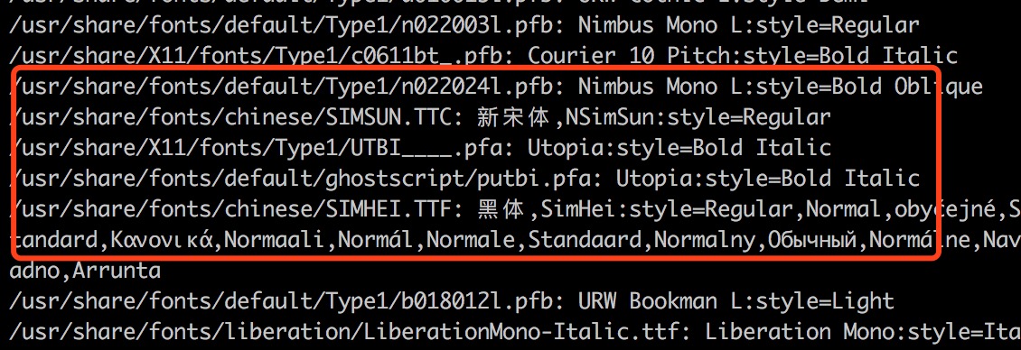 9.这样所有的步骤就算完成了,最后再次通过fc-list看一下字体列表: