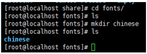 2.在这之前我们还需要新建目录,首先在/usr/share/fonts目录下新建一个目录chinese: