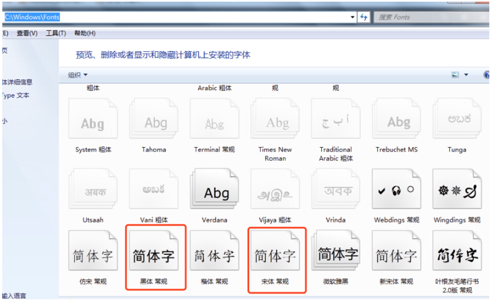 1.在CentOS中,字体库的存放位置正是上图中看到的fonts目录,所以我们首先要做的就是找到中文字体文件放到该目录下,而中文字体文件在我们的windows系统中就可以找到,打开c盘下的Windows/Fonts目录: