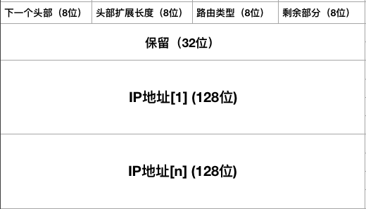 IPv6路由头部(Routing Header)为发送方提供了一种IPv6数据报控制机制,以控制(至少部分控制)数据报通过网络的路径。路由扩展头部有类型0(RH0)和类型2(RH2)两个不同版本,前者处于安全方面的考虑已被标准化组织否决。