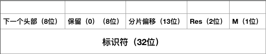 分片头部包括的信息与IPv4头部中的相同,只不过标识符字段是32位,更大的标识符字段提供了切分更多分片的能力。