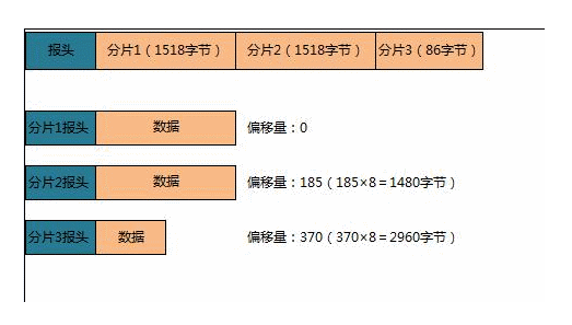分片头部中的偏移量字段以8字节为单位,因此分片需要在8字节的边界处进行。因此除了最后一个分片之外的所有分片都必定是8字节的倍数。接收方在对分片进行重组之前,必须确保已接收原始数据报的所有分片。与IPv4分片一样,分片可能不按顺序到达接收方,但需要按顺序重组为一个数据报。