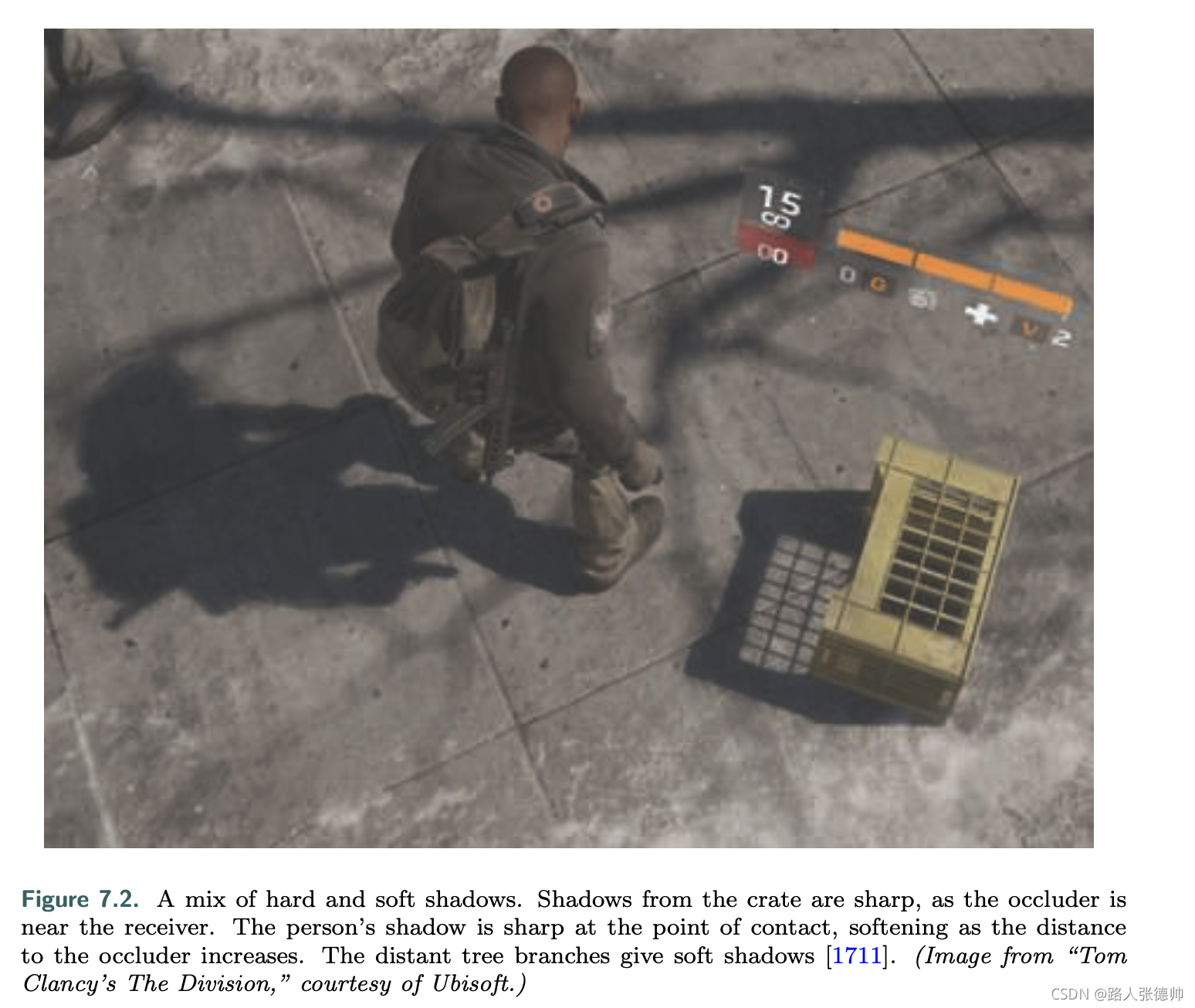 真确的soft shadow ,离阴影投射物体越近,阴影就越sharp,soft阴影的大小和hard 阴影的大小并不一样,它随着光源大小的增加而减小,soft shadow 让物体看起来更真实一些,但是hard shadow 渲染的更快