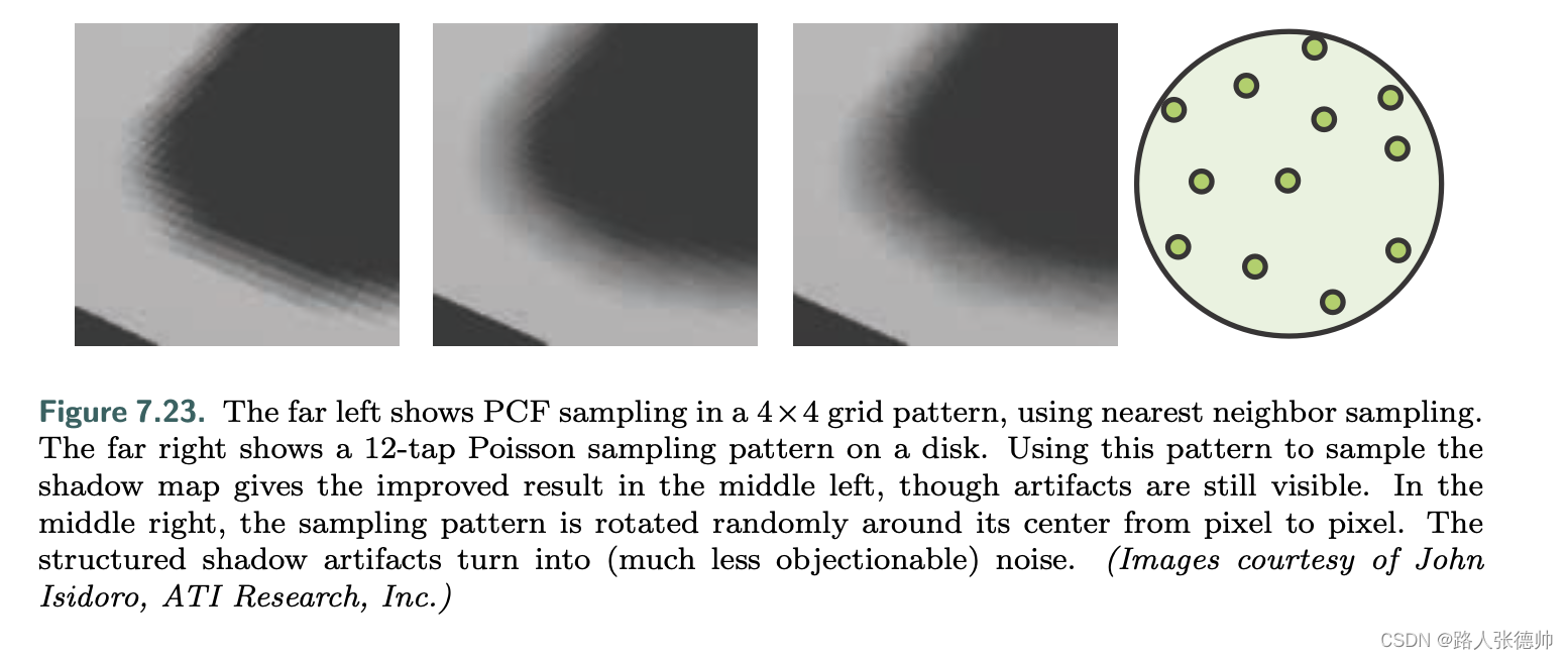 这个对shadow map 中的多个点进行采样,然后混合的方法叫做percentage-closer filtering (PCF) [1475].