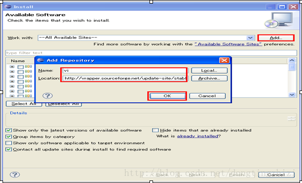 还有一个更简单的方法是直接用Eclipse安装,点击Help->Install New Software在弹出的对话框中点Add:
