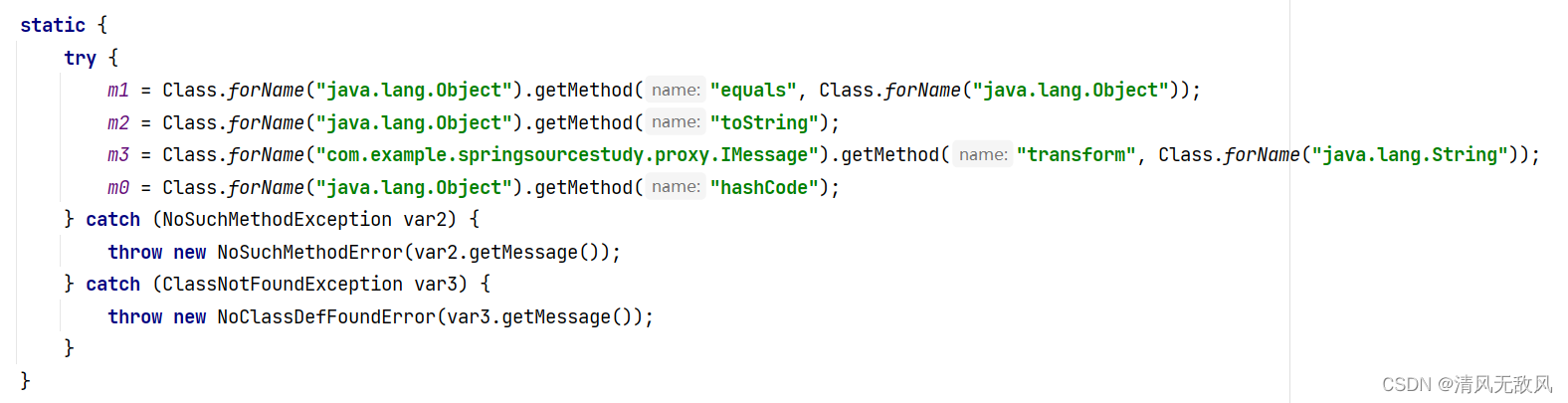 静态代码块:通过反射机制,获取到目标接口的方法 m3。
