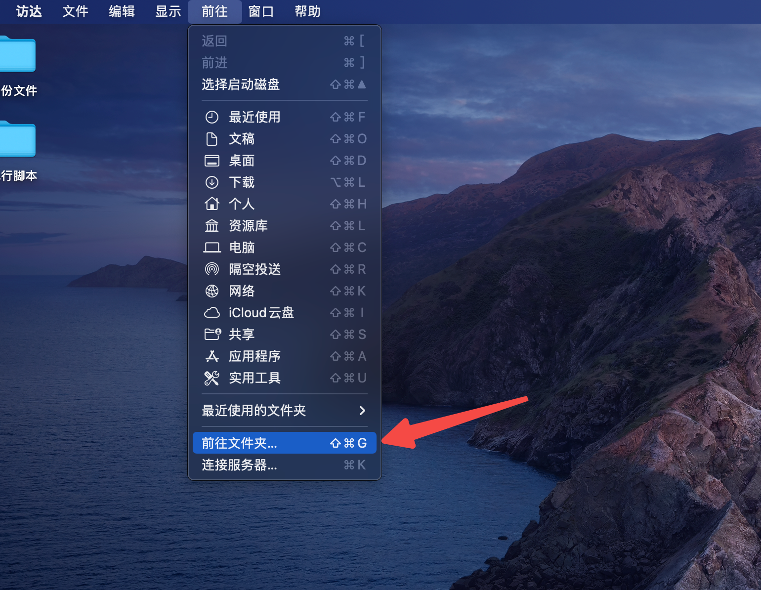 - 点击访达-》前往-》前往文件夹