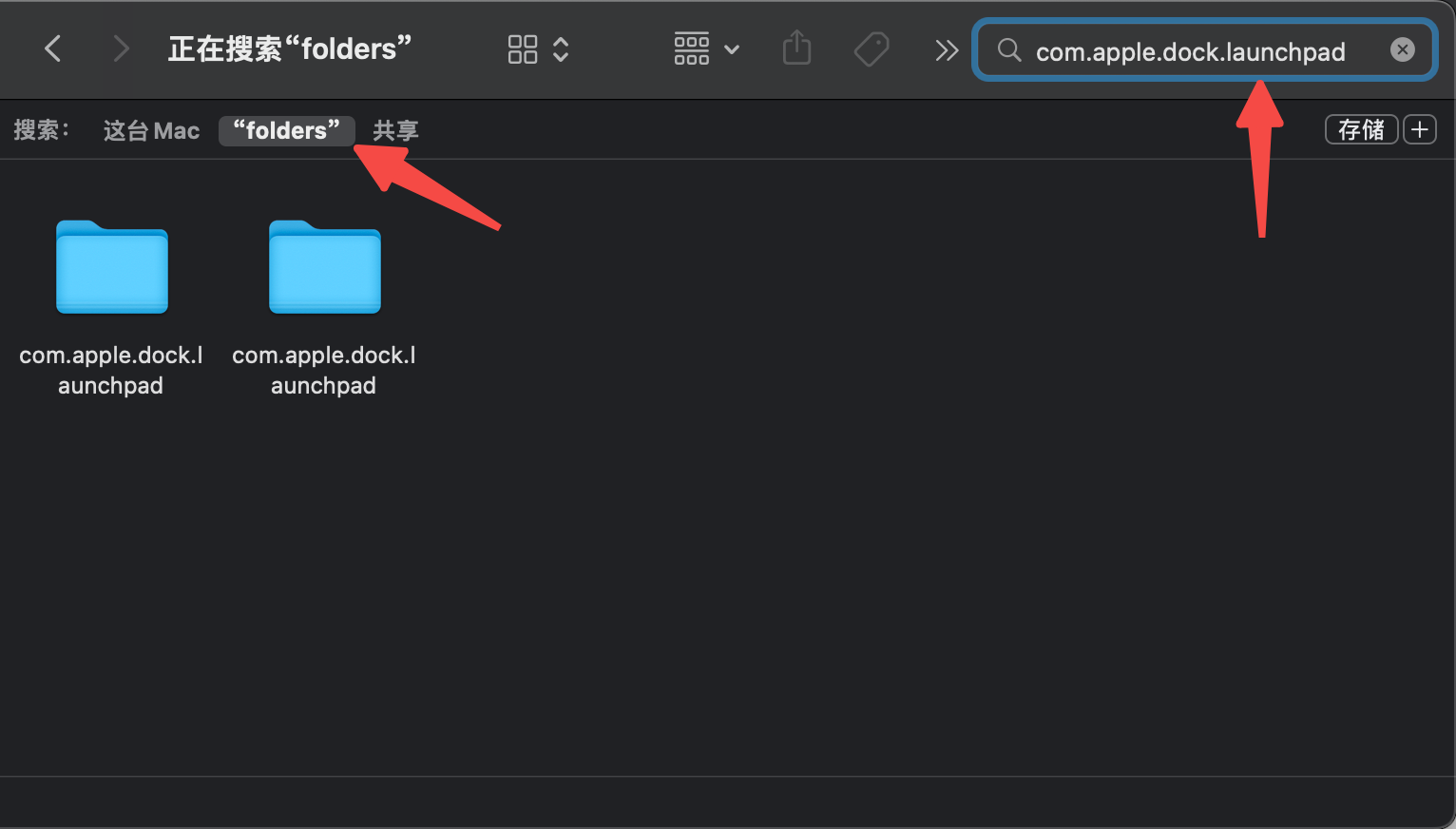 - 然后在打开的窗口搜索栏,输入:com.apple.dock.launchpad