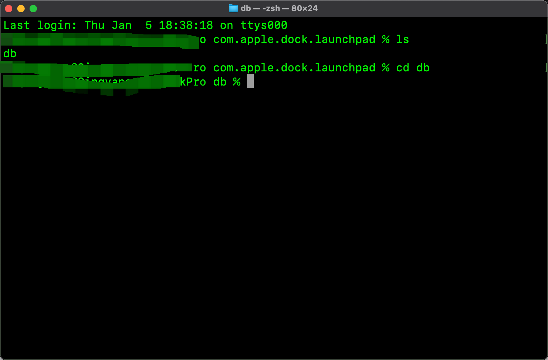 右击打开终端进入这个文件夹,下面会出现db文件夹,进入db文件夹,输入: