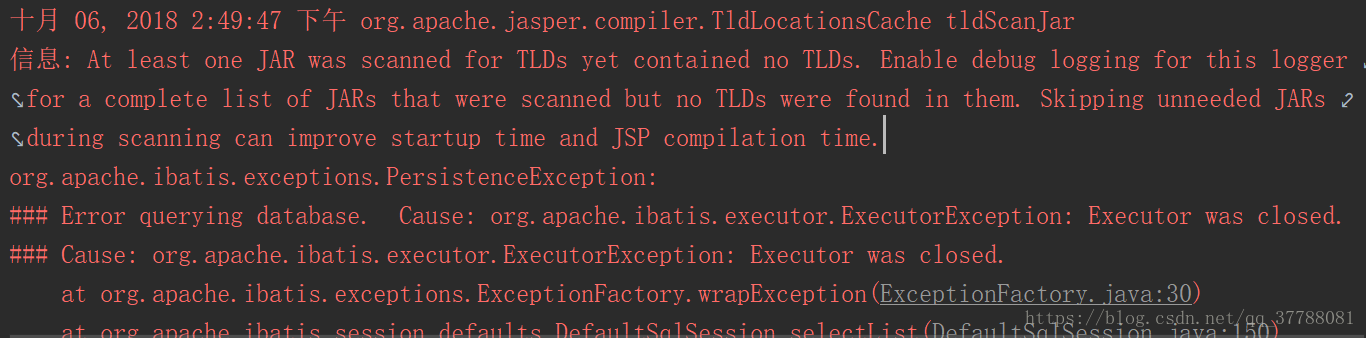 ### Error querying database. Cause: org.apache.ibatis.executor.ExecutorException: Executor was closed.