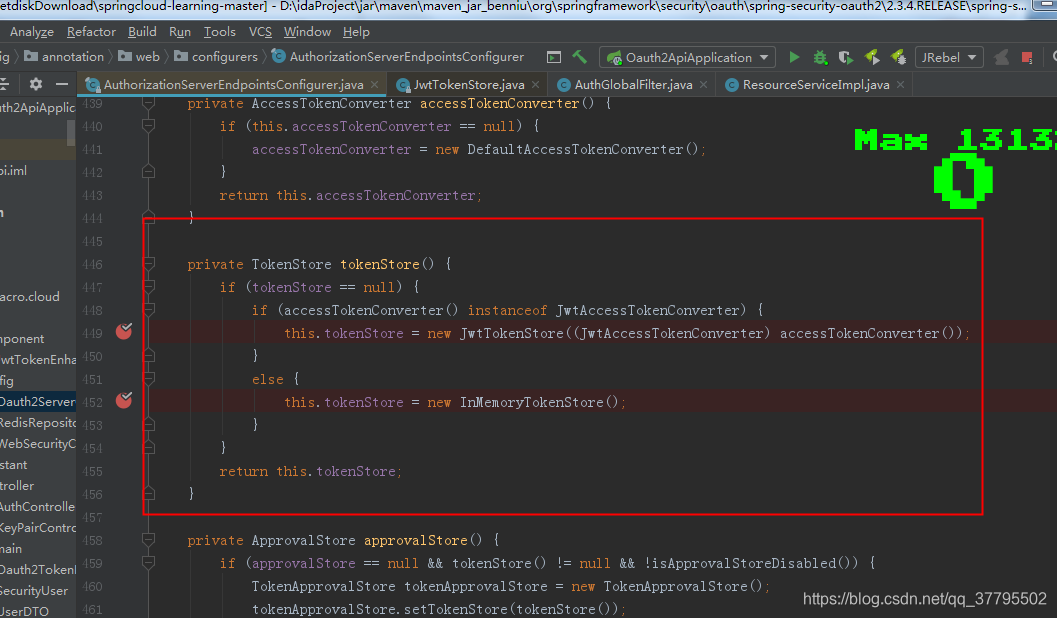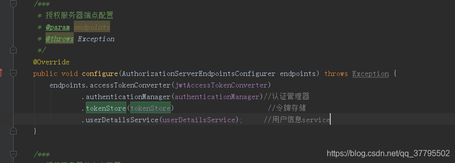 有了上面的前提后,我们直接在AuthorizationServerEndpointsConfigurer类中定位TokenStore