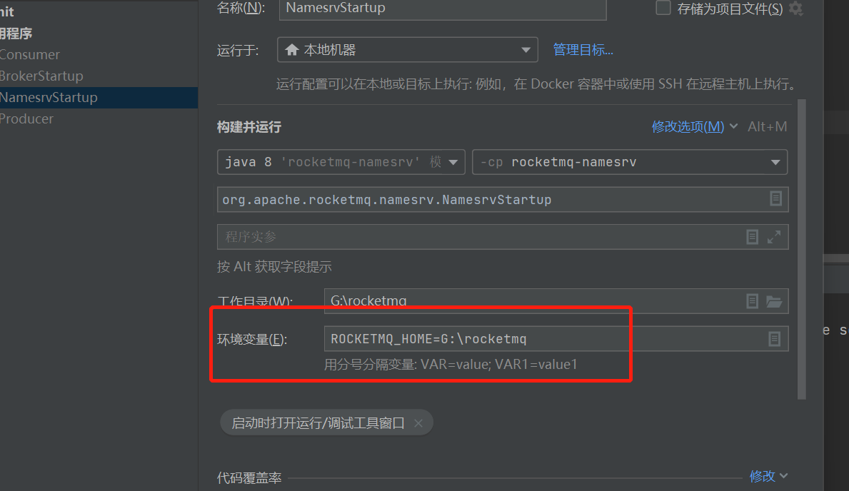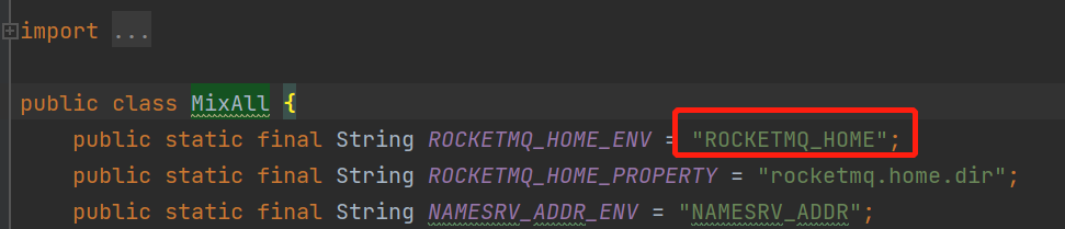 在github上拉取rocketmq源码之后,尝试启动NameServer。在idea的配置应用程序中指定启动要读取的环境路径key值在org.apache.rocketmq.common.MixAll文件中
