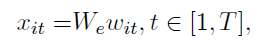 对于一个分句的词,输入到Embedding层转化为词向量,Embedding层参数使用的是word2vec在训练集和验证集上进行非监督训练后得到的We矩阵进行初始化。Embedding的维度为200。
