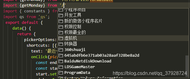 而我此次需要引入文件是上一级的上一级里面的文件,所有只需要重复两次就行 ../../ 这样就可以找到想要的文件了。如下图
