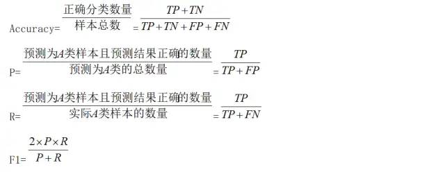 采用分类任务的精确率 P(precision)、召回率 R(recall) 和 F1 值三个指标作为模型性能的评判标准。