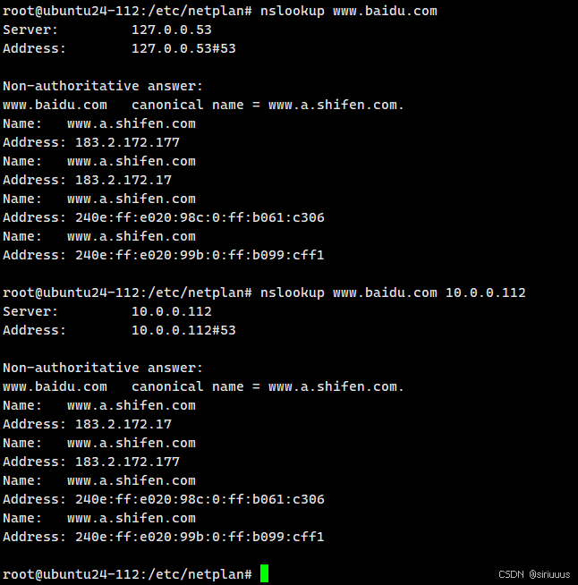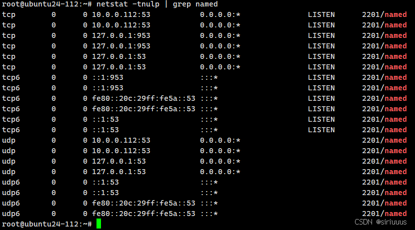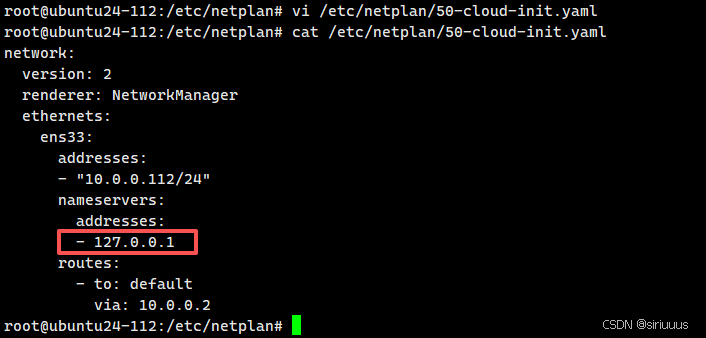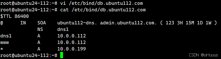 | 10.0.0.112 | ubuntu24-112 | DNS 服务器 | 为客户端主机提供DNS解析服务 | ubuntu24 |