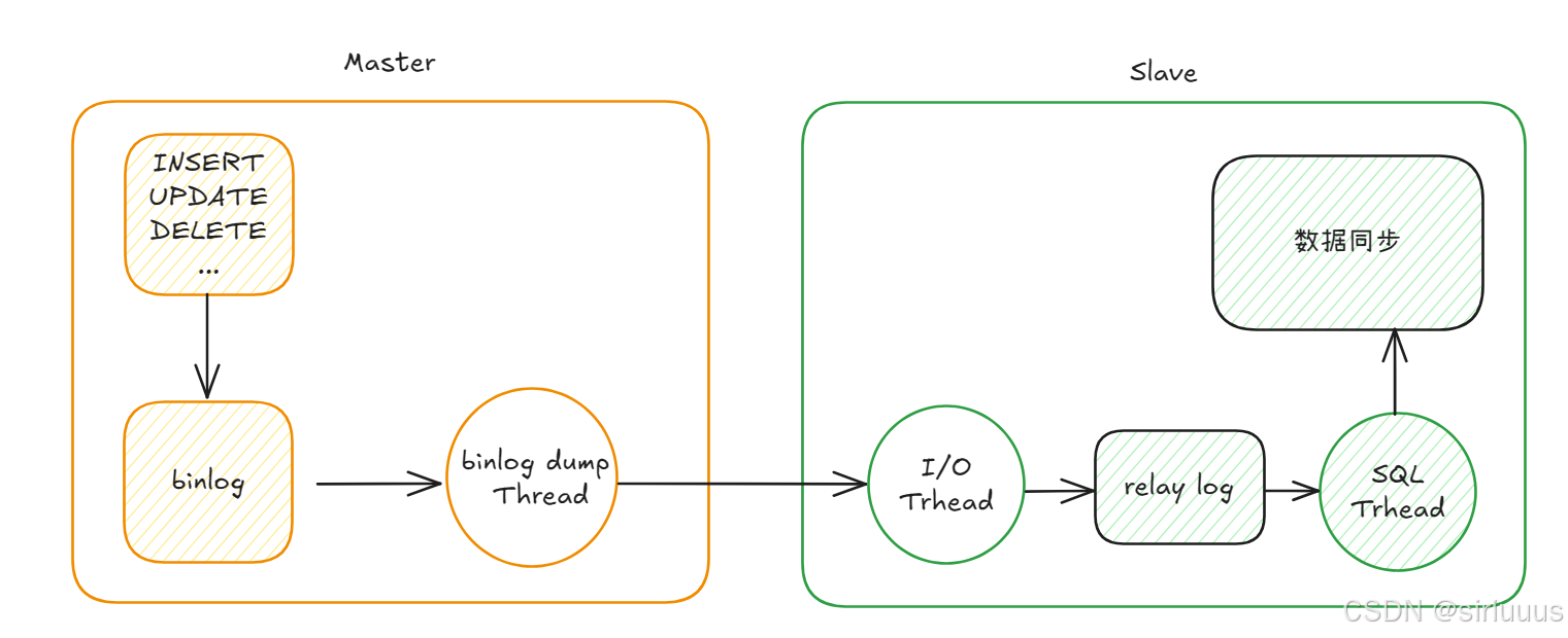 从库:I/O Thread 接收主库发送的 binlog 数据,将其写入本地的中继日志 relaylog 。