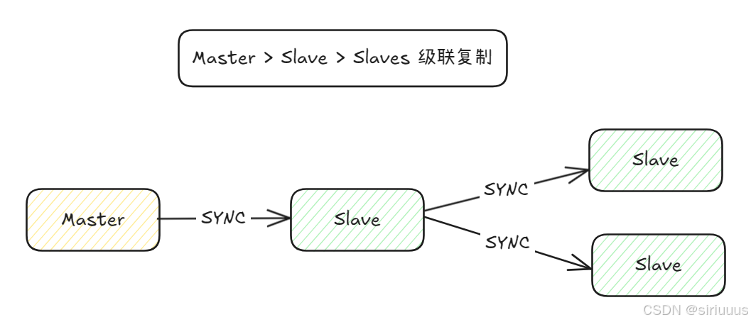 1 个主库 → 1 个 “中间从库” → N 个 “下游从库”;下游从库从中间从库同步 binlog,不直接连主库。
