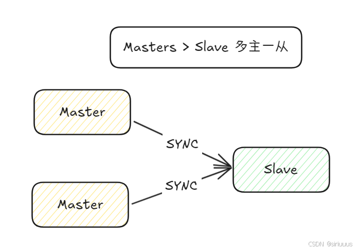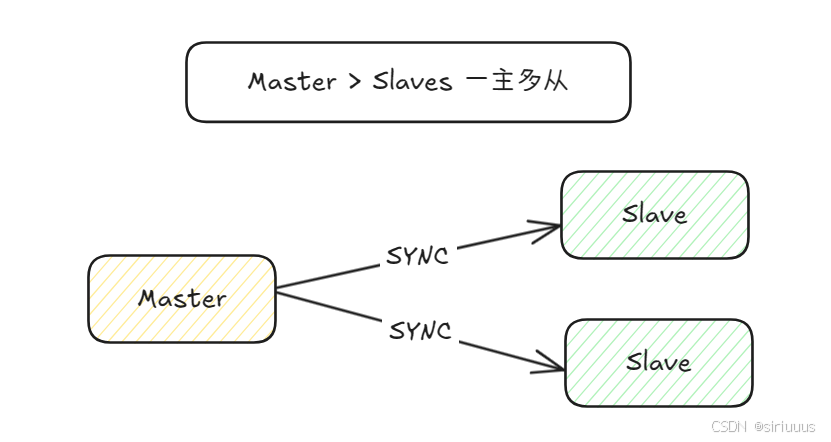 1 个主库 + N 个从库(N≥2),一主多从,所有从库直接从主库同步 binlog。主库仅负责写,从库负责读。
