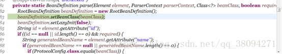 beanClass我刚开始以为是interface 后来发现实际上是dubbo标签的类型class com.alibaba.dubbo.config.ConsumerConfig比如这个, 实际上是上上图的registerBeanDefinitionParser()方法中第二个参数的 参数的类的全路径名。