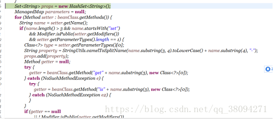从com.alibaba.dubbo.config.spring.ReferenceBean拿到所有的方法,找到已set方法开头的方法, 说白了 这就是set注入。 比如有个方法名称为setInteface的方法,如果这个方法的长度大于3并且以set开头,方法类型是公共的,方法有且只有一个参数, 那么他会获得这个方法的参数属性, 并且用’beanClass.getMethod("get" + name.substring(3), new Class<?>[0]);拿到与之匹配的get方法。但是get方法就判断了是不是空,修饰符是否为public 判断完了continue;完全看不懂有什么用。