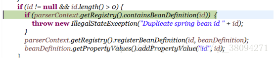 这边一个判断是看看springioc 容器中有没有和这个id 一样的被代理类, 没有的话就将id作为key,beanDefinition 作为value 注入了spring 容器中。