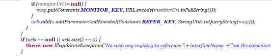 再回到init()方法中 他将renference中的各个属性啊比如interface id interface中的method等等 放入一个map中然后去调用createproxy 方法,其实是将全局配置加载进map中然后传过去。createproxy 方法中会先看看是不是injvm的,如果是就本地调用。不是的话然后会看到有个loadRegistry方法。里面会将zk 地址放入到registries中。有个UrlUtils.parseURLs(address, map)方法这个会拼装出一个Url, 然后如果修改zk协议为registry协议。(就是url本来是zookeeper://.... 变成了 registry://....)并且是协议中多个属性 registry=zookeeper;