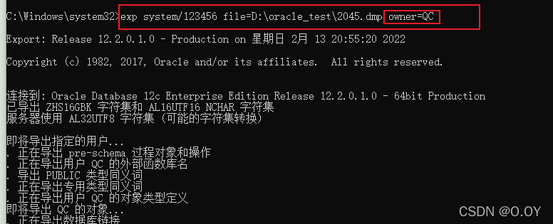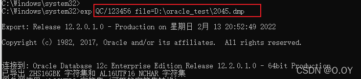 exp 用户名/密码@192.168.2.214:1521/orcl file=路径地址 full=y