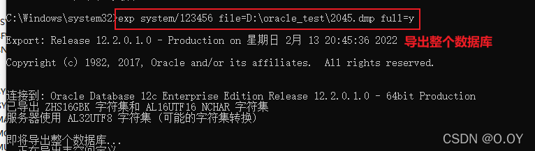 full=y:表示导出完全的数据库。当然如果要执行完全导出,必须具有特殊的权限,比如dba或sys